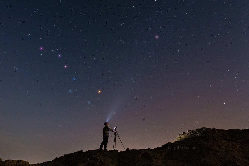 红烧脚丫,2014年8月14日摄于新疆克拉玛依魔鬼城。佳能6D+13-35,焦距16mm,ISO 3200,f/3.5,10s。后期使用星芒软件点出了北斗七星和北极星。