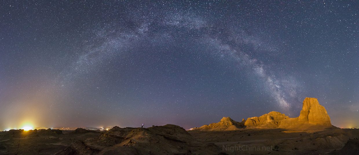 一直以为8月份天刚刚黑透,银河就到了头顶,银河拱桥已经难以拍摄。在魔鬼城尝试了一下,效果还算不错。银河虽然很高,但是两排接片还是把地面和银河都轻松收了进来。出自长安CS系列自在星空之旅。