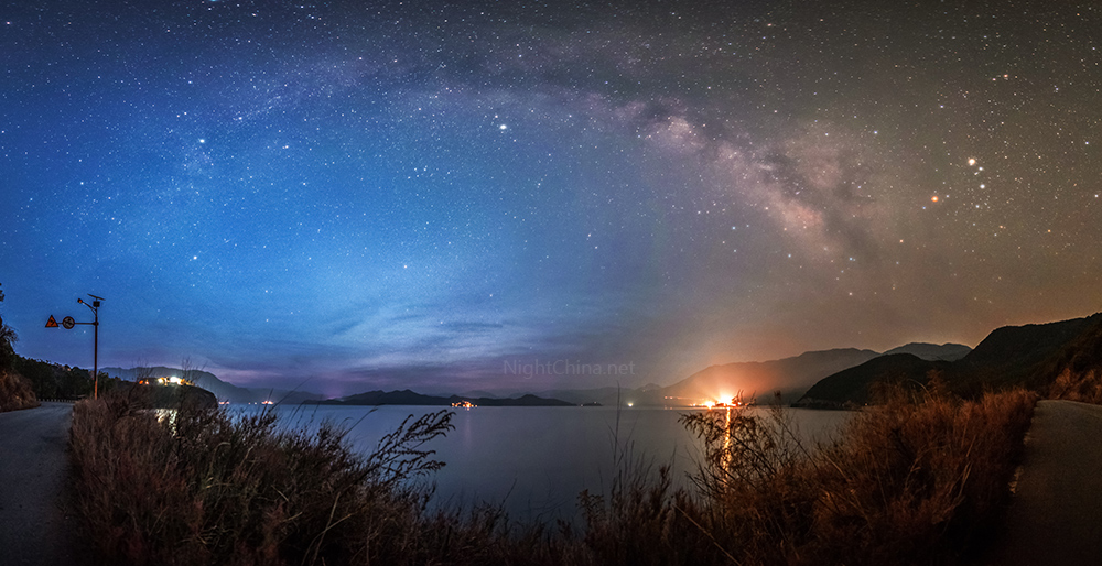 阿五,2015年3月25日摄于云南泸沽湖畔。尼康D4 + 14-24镜头,ISO 4000,f/2.8,30秒,9张竖拍全景拼接而成。