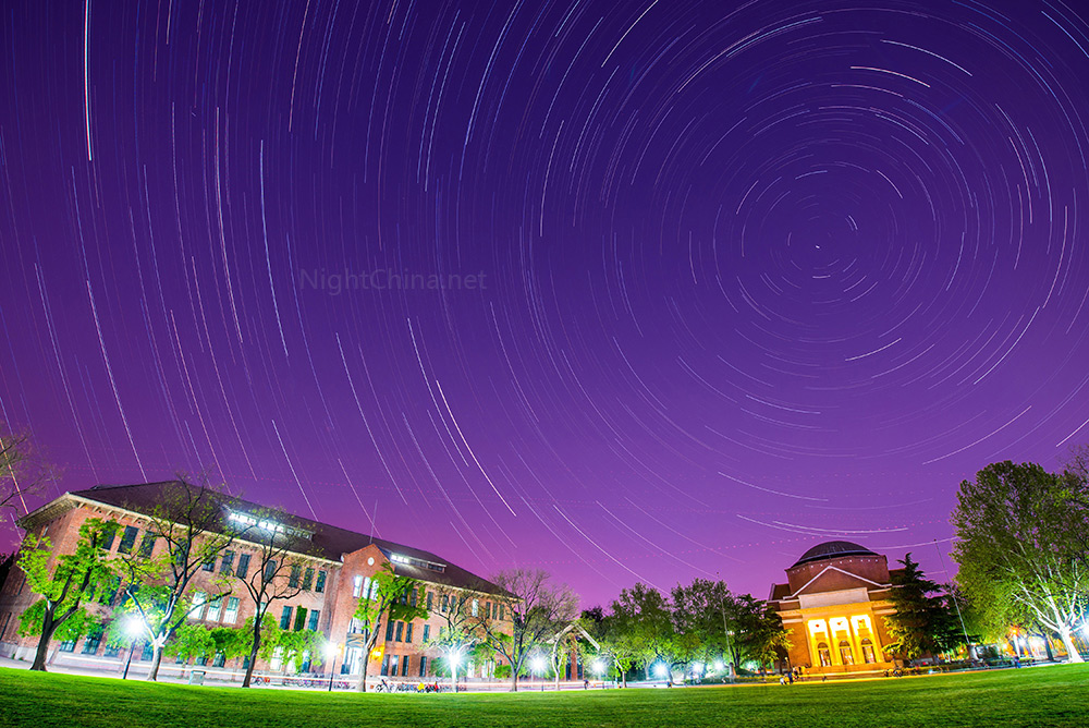 王卓骁,2015年4月21日摄于北京清华园。尼康D610 +14-24镜头,焦距14mm,ISO 200,f/5.6,单张30秒,180张叠加。