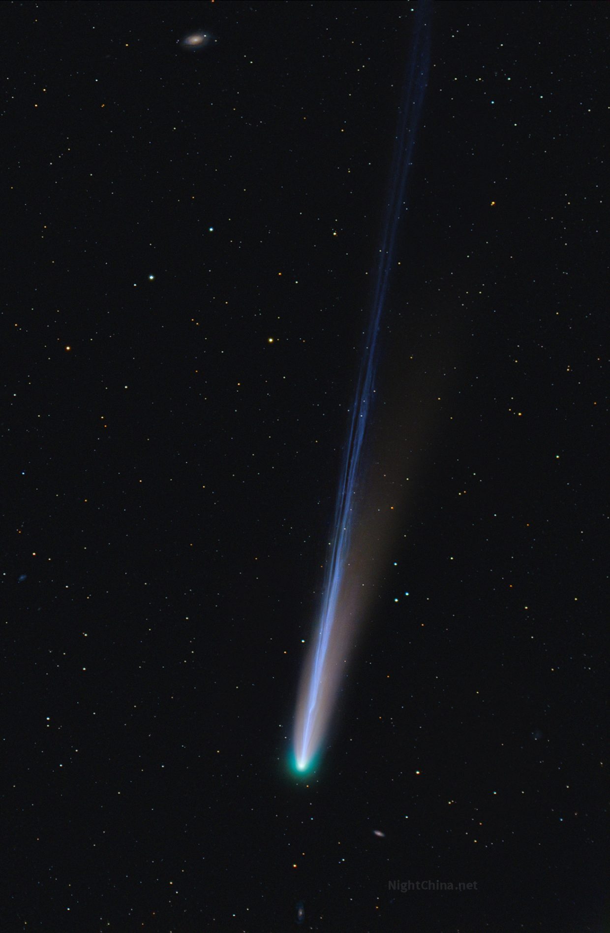 夜空深处,一位来自太阳系边缘的访客正款款而来。编号C/2025 A6的莱蒙彗星,拖曳着渐次分开的双尾,蓝色的离子尾和黄色的尘埃尾,像是宇宙写在黑暗画布上的一笔。它奔向近日点的旅程还在继续,11月的太阳会让这双尾绽放得更加华丽。那些见过2020年新智彗星的人,或许会从中看到似曾相识的壮美。