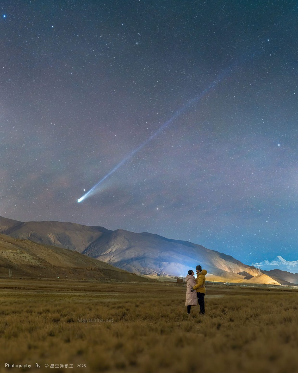 喜马拉雅的夜空,迎来了一位“客人”。编号C/2025 A6的莱蒙彗星,刚刚经过近地点,已达到肉眼可见的程度。珠峰脚下,它那奔向太阳的“帅气身姿”清晰可见:标志性的双尾在夜空中展开,一道是纤细的蓝色离子尾,另一道是弥散的黄白色尘埃尾。这是世界之巅与宇宙访客的一次壮丽同框。