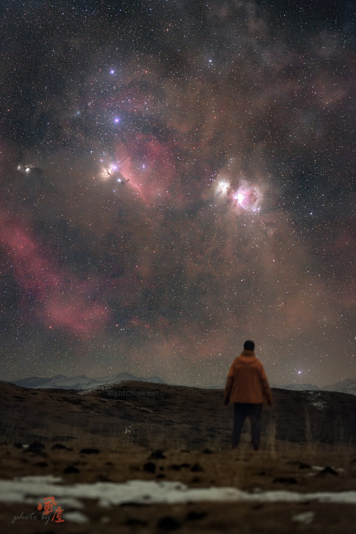 站在旷野,夜的苍穹徐徐展开她隐秘的卷轴。山影在夜色里凝成淡淡的轮廓,风掠过草甸,带来远处雪山的清冽,银河戴着她珍藏了一年的冬季宝石横亘天际,猎户座的星云象暗夜花朵般怒放,星空厚重而轻盈,荒蛮又温柔,广阔而细腻,遥远又触手可及。