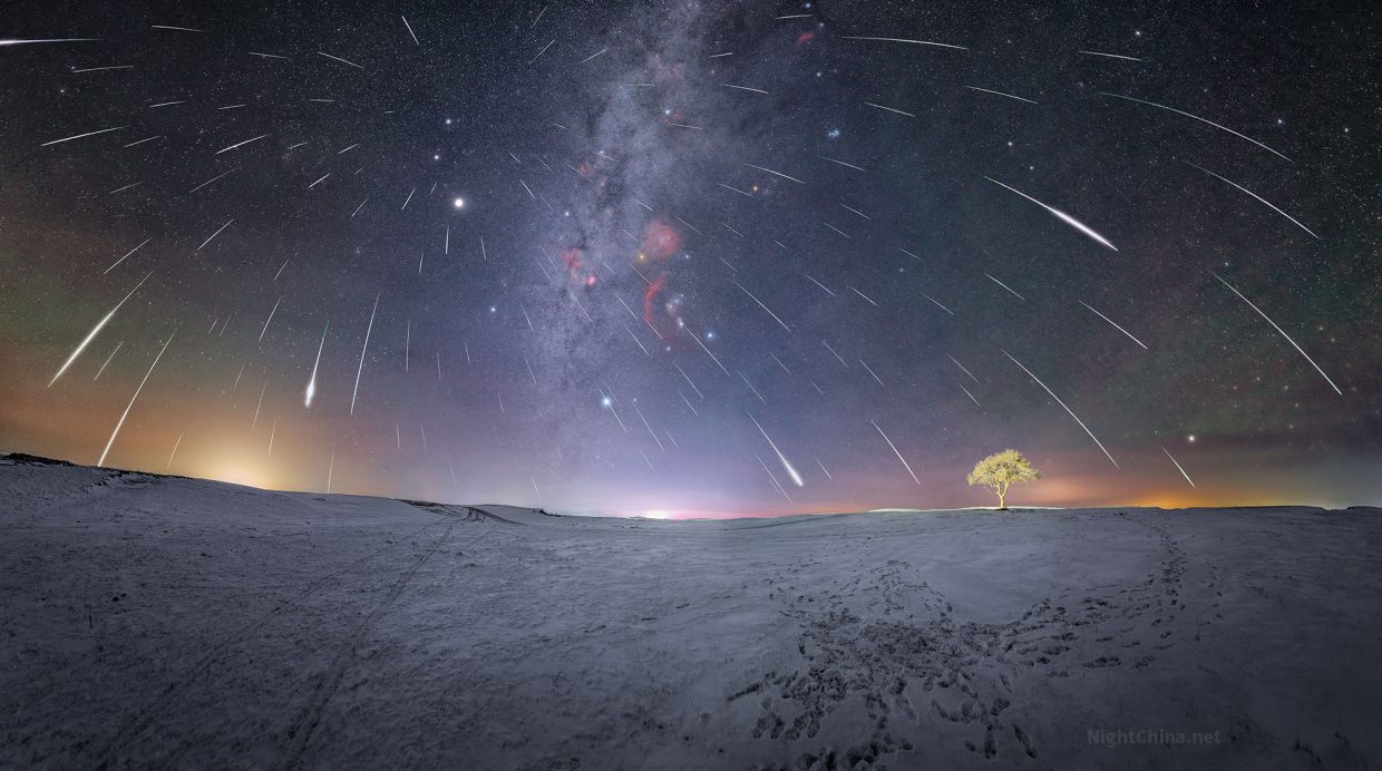 银河之下,流星雨如期而至。源自小行星法厄同的尘埃闯入大气,在高空燃起明亮的光痕,一道道划过夜幕。在冰冷的雪原之上,这些短暂的光,构成了地球与宇宙最直观的相遇。