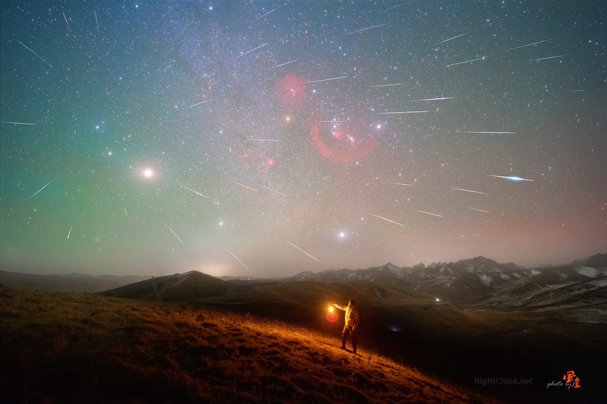 没有雨水落下,落下的是光。千针万箭,穿云而来。红色的是星云的呼吸,绿色的是大气的涟漪,划过的是时间的碎片。 如果问什么是自由?自由就是此刻——手中有一束光,头顶有亿万星。