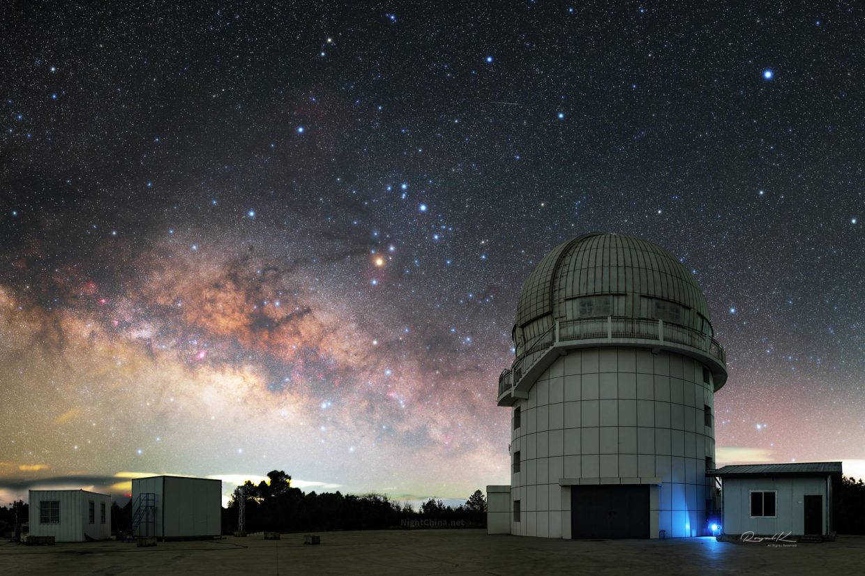 王晋,2026年3月23日摄于 云南 丽江市高美古天文台。尼康Z6II(改机) + 唯卓仕35mm F1.2 LAB Z,ISO 800,f/1.2,单张曝光60秒,共20张拼接。